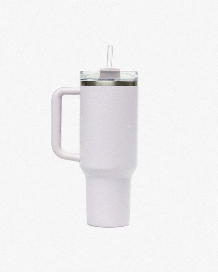 Take it with you to a high-intensity workout or on an extra-long commute to keep your drink cold for hours. The lid features a rotating cover with three positions: a straw opening, a wide mouth for drinking, and a full-cover top to prevent spills. The larger size even fits comfortably in your vehicle’s cup holder and comes with a rugged handle for carrying.